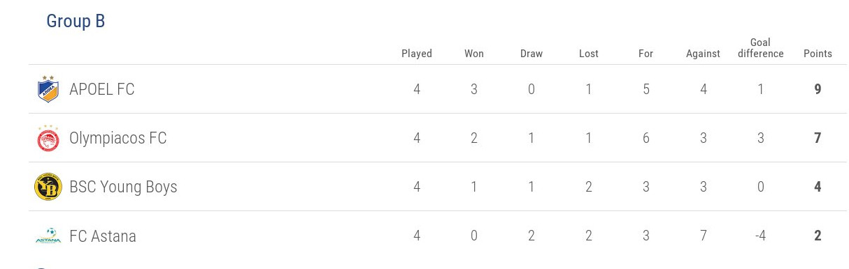 Η βαθμολογία (4 ματς)